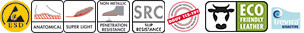 - wg EN ISO 20345 S3 SRC, typ B (trzewiki)