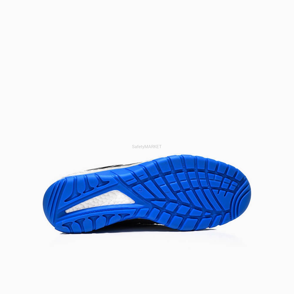 MADDOX szaro-niebieski Low ESD S1P ma wszystko: stalowy podnosek chroni przed niebezpieczeństwem przed spadającymi przedmiotami, bezmetalowa bariera penetracyjna niezawodnie zapobiega zagrożeniom od dołu. Elastyczna i wytrzymała mikrofibra i materiał tekstylny nadają butowi bezpiecznemu solidny wygląd. Wewnątrz oddychająca wyściółka tekstylna zapewnia komfort i przyjemny klimat stóp.
