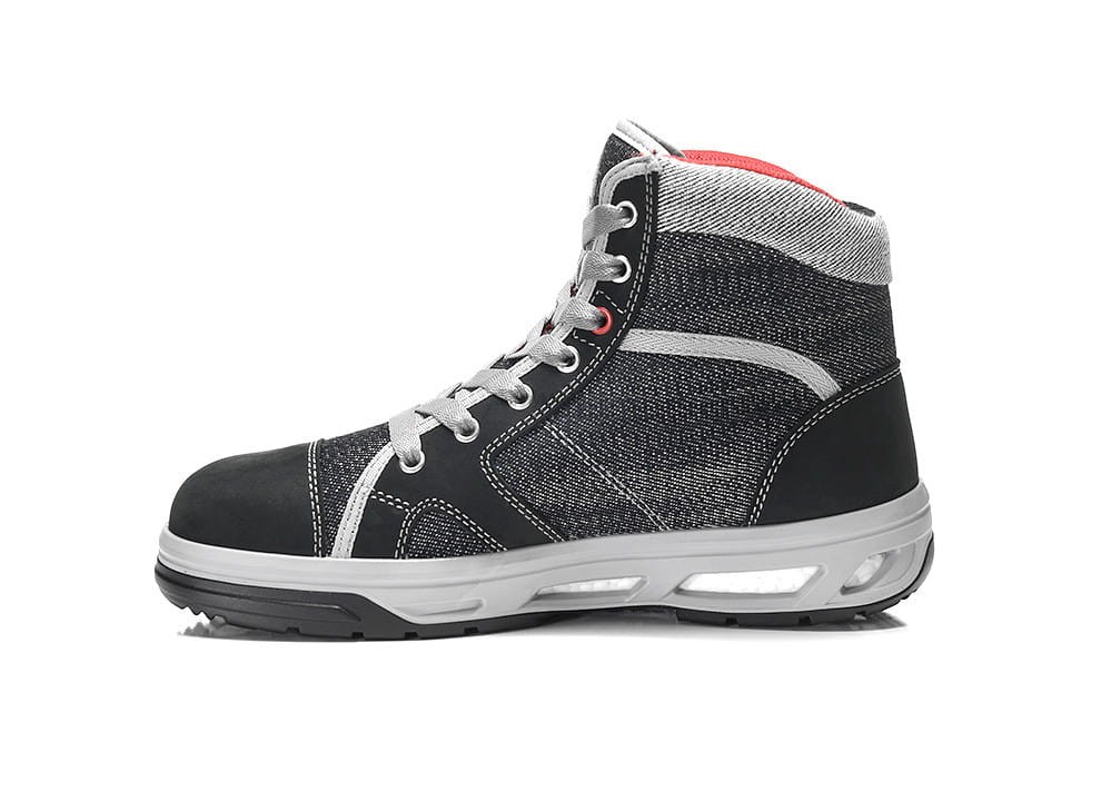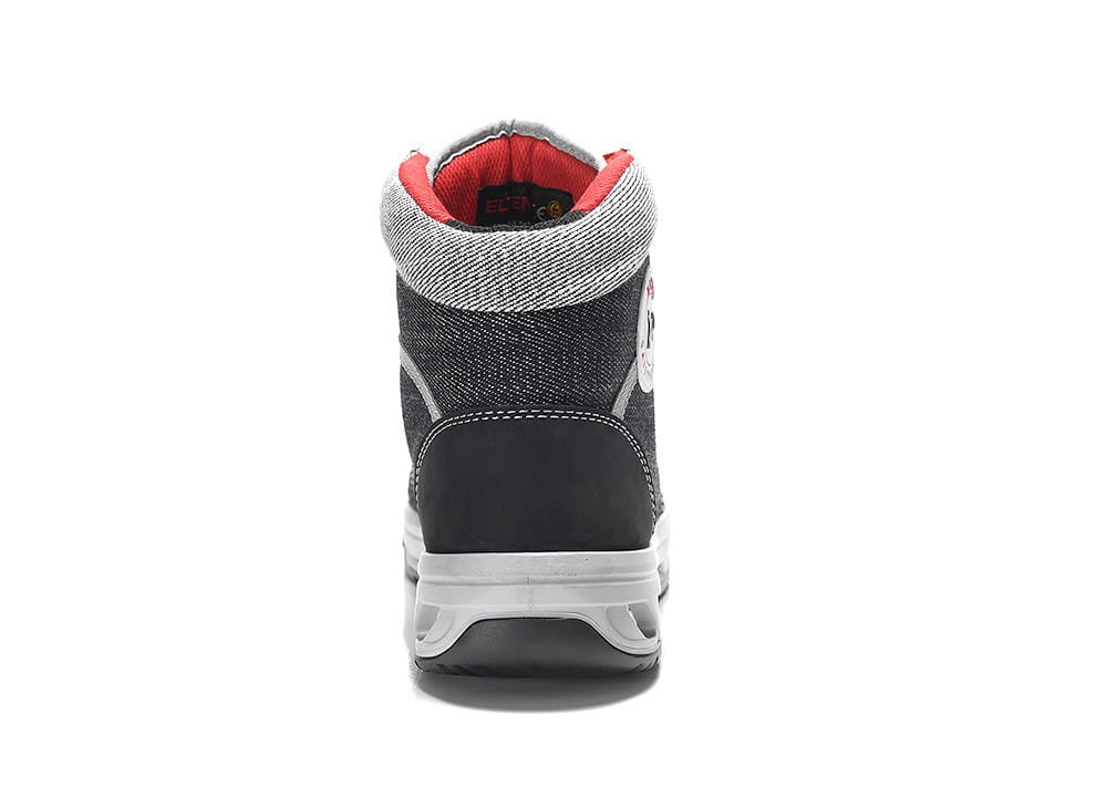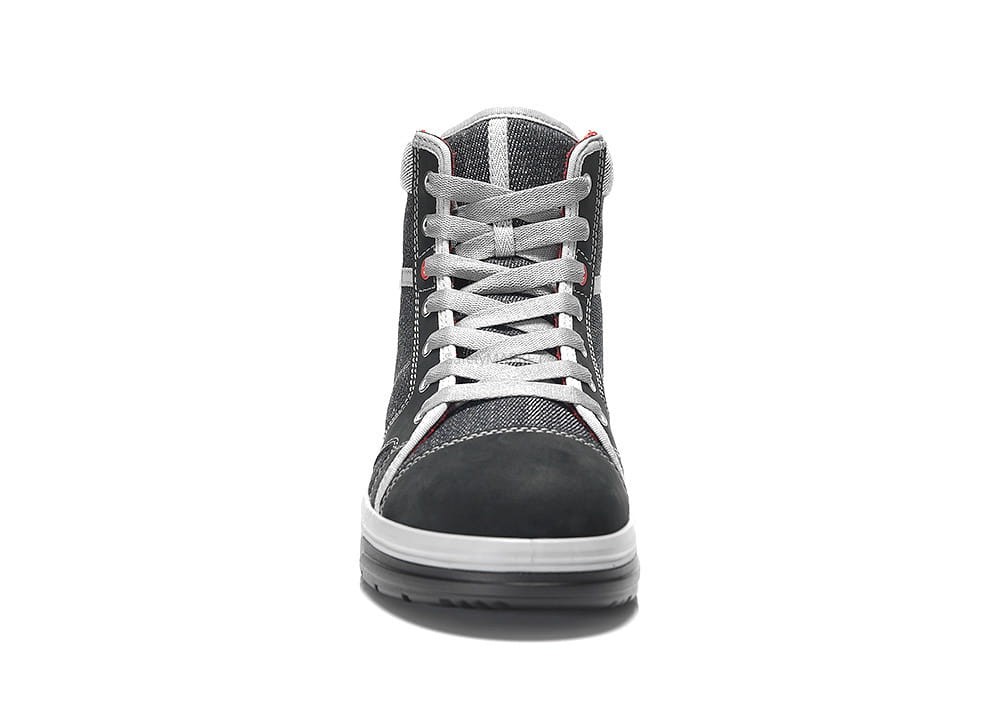 Ten modny but wykonany jest z hydrofobizowanego materiału tekstylnego o wyglądzie dżinsów i skóry nubukowej i jest wyposażony w podnosek, który chroni stopę przed urazami spowodowanymi upadkami. Wewnętrzny materiał wykonany z tekstylnej podszewki BIOACTIVE zapewnia wygodne dopasowanie.